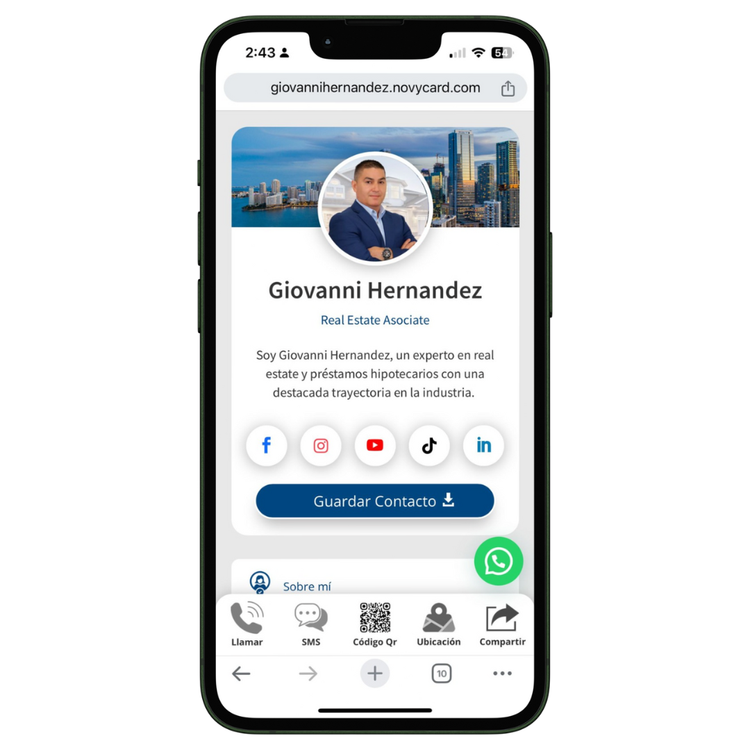 Es una tarjeta de presentación que permite compartir tus datos de contacto de manera rápida y sencilla a través de dispositivos móviles. En lugar de una tarjeta física, con la NovyCard puedes compartir tu información profesional, como nombre, cargo, teléfono, correo electrónico, redes sociales y sitio web, todo de manera electrónica. Esto la convierte en una herramienta moderna, práctica y ecológica, ideal para profesionales y empresas que buscan optimizar el intercambio de datos de contacto en eventos, reuniones o cualquier situación de networking. Además, la NovyCard se puede actualizar en tiempo real, lo que asegura que siempre compartirás la información más actualizada.